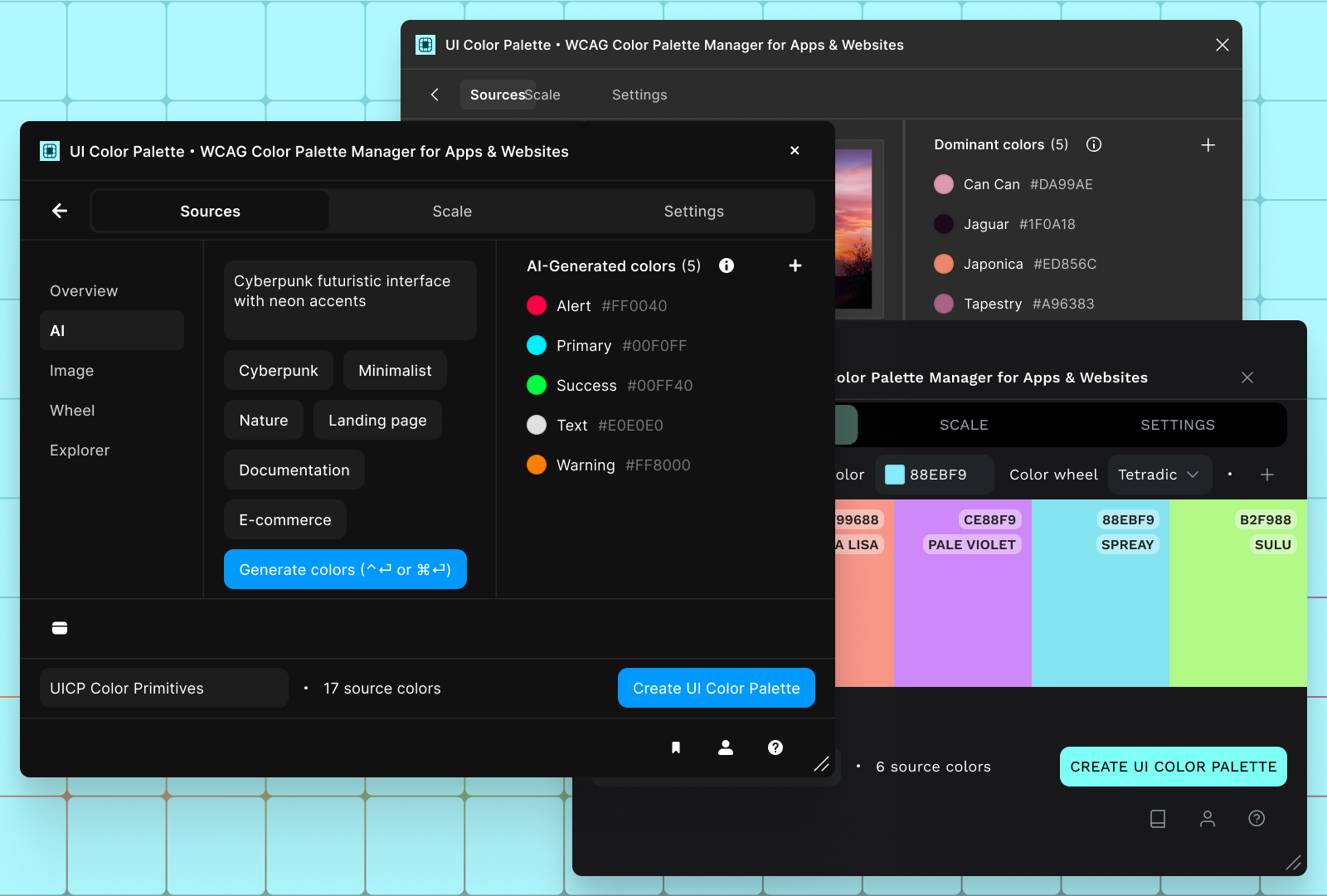 Artificial intelligence made its way into UI Color Palette with three new tools: